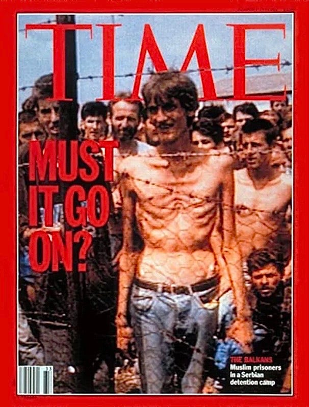 Chomsky: [I]f you look at the coverage [i.e. media coverage of earlier phases of the Balkan wars], for example there was one famous incident which has completely reshaped the Western opinion and that was the photograph of the thin man behind the barb-wire.